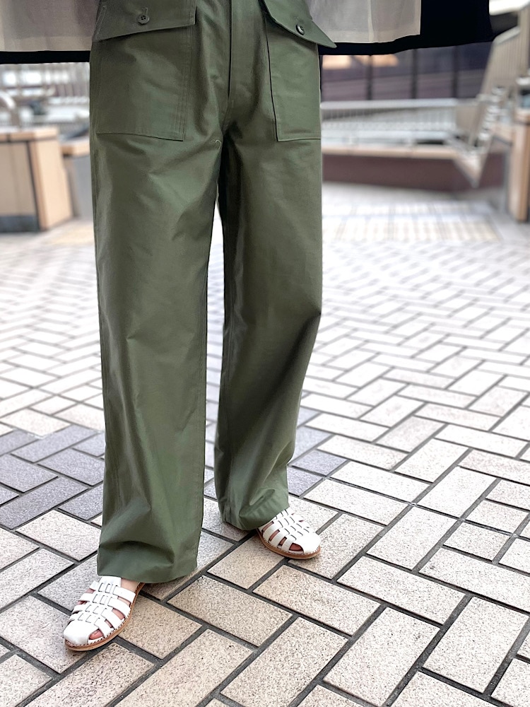 着心地:少し光沢を感じるコットン素材で、程よいハリがあるので腰回りや脚のラインを拾いません。脚長に見せてくれるデザインです。