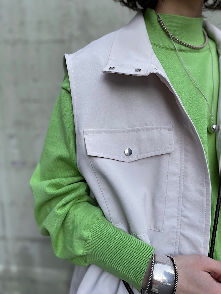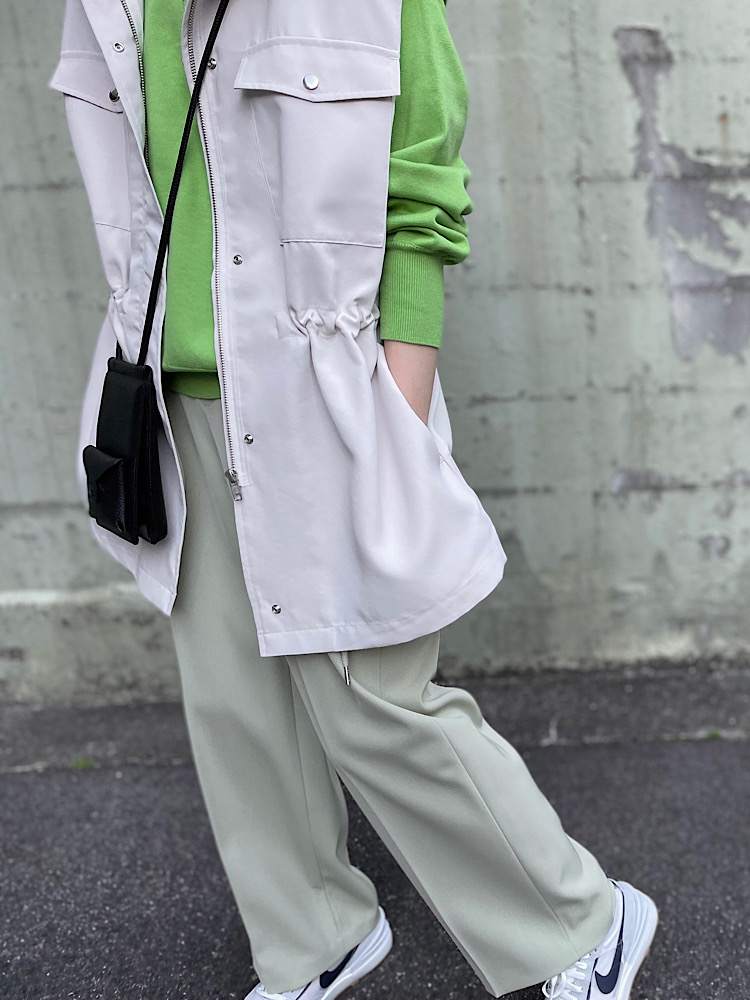 春らしいグリーンカラーでまとめた先取りコーデです。