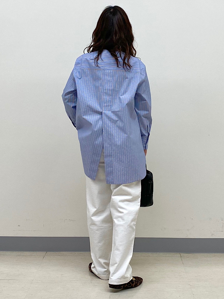 着用アイテム:ストライプノーカラーシャツ