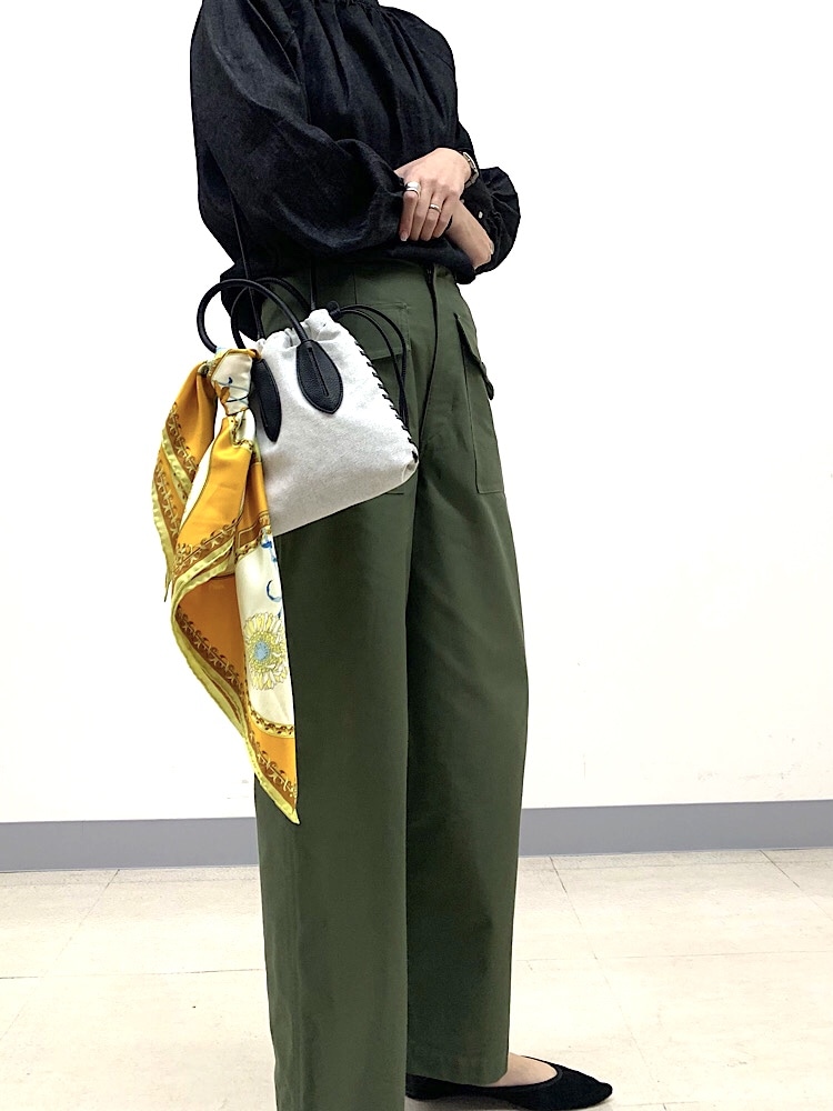 【素材感・着心地】ハリのある素材。腰回りのラインも気になりにくい。