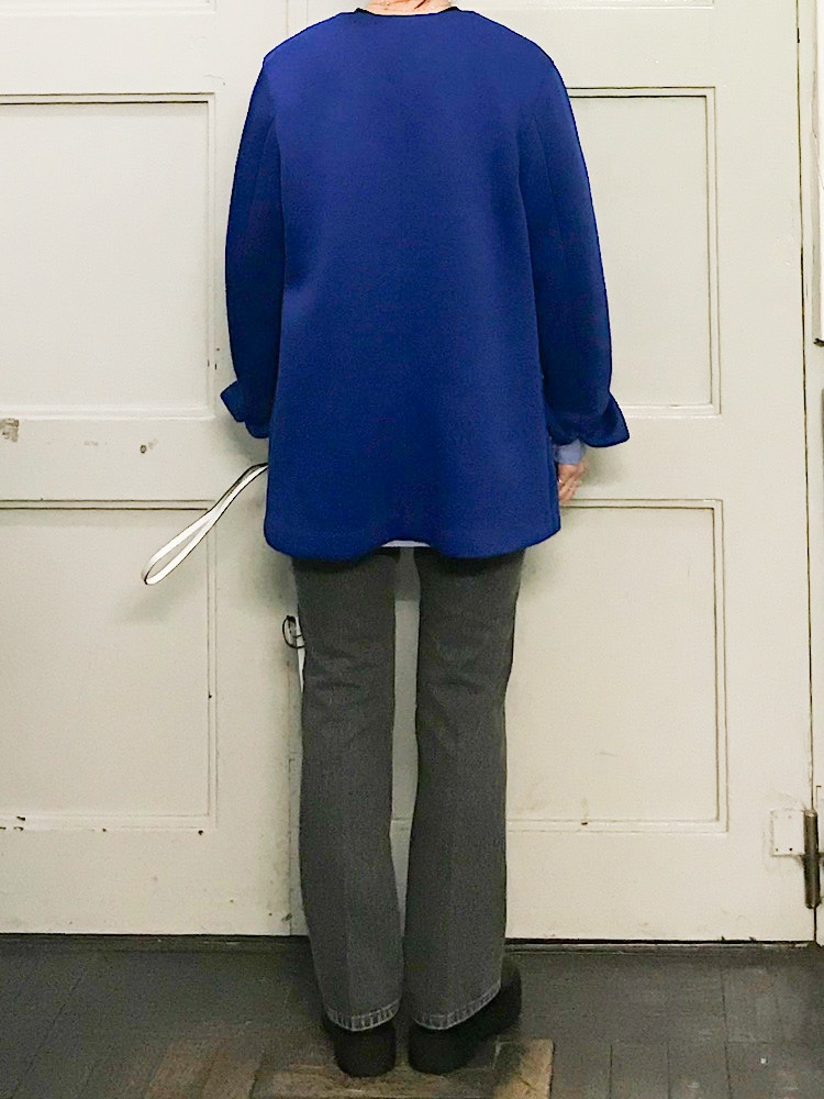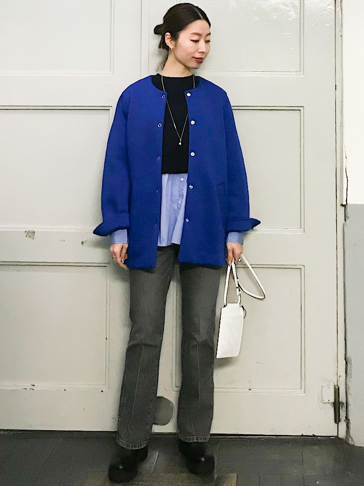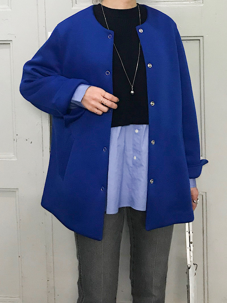 サイズ感:全体的にゆとりがありザックリ着て頂けます。特にお袖にボリュームがあり今年らしいシルエットに。