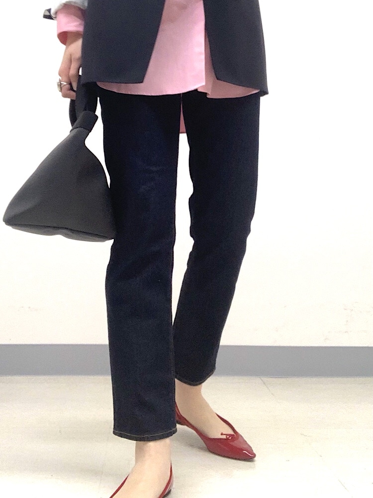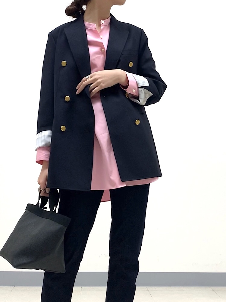 【素材感・着心地】コットン素材でハリがあります。身幅、腕周りもゆったり。生地は薄手なのでジャケットの下に着てもゴワゴワしない。