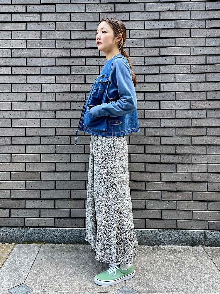 素材感・着心地:柔らかいデニム素材。身幅、袖周りにゆとりがある為、インナーを選ばず着用できます