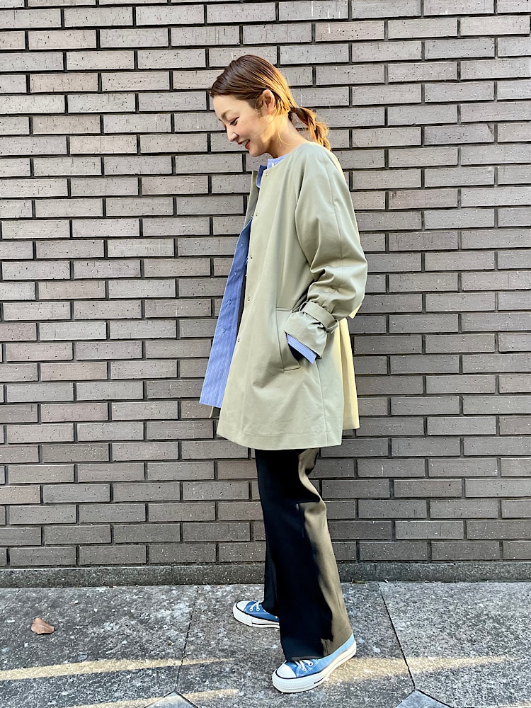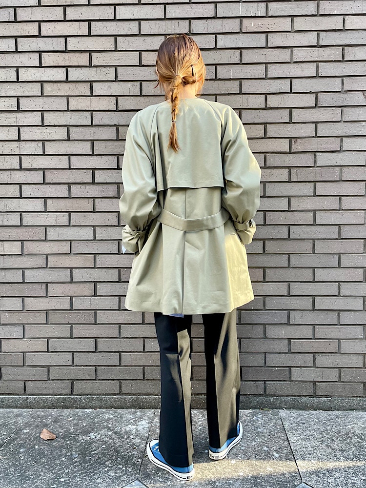 素材感・着心地:コットン/ナイロンの少しハリのある素材感。バックにスリットが入っておりインナーを見せても可愛いです