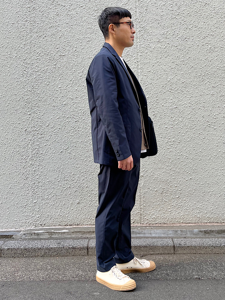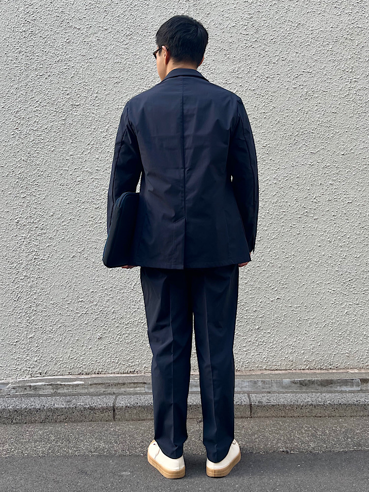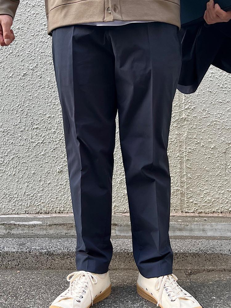 素材感/着心地:ストレッチが効いており、シワになりにくいのが特徴となっております。デスクワークが多い方にオススメです。