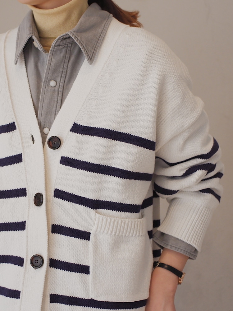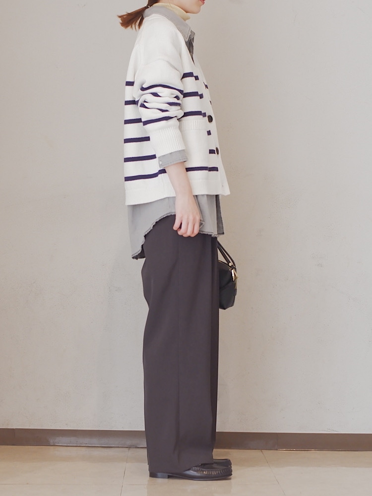 着心地:ややゆとりのあるサイズ感なので、シアー素材のタートルネックとデニムシャツをレイヤードしてみました!