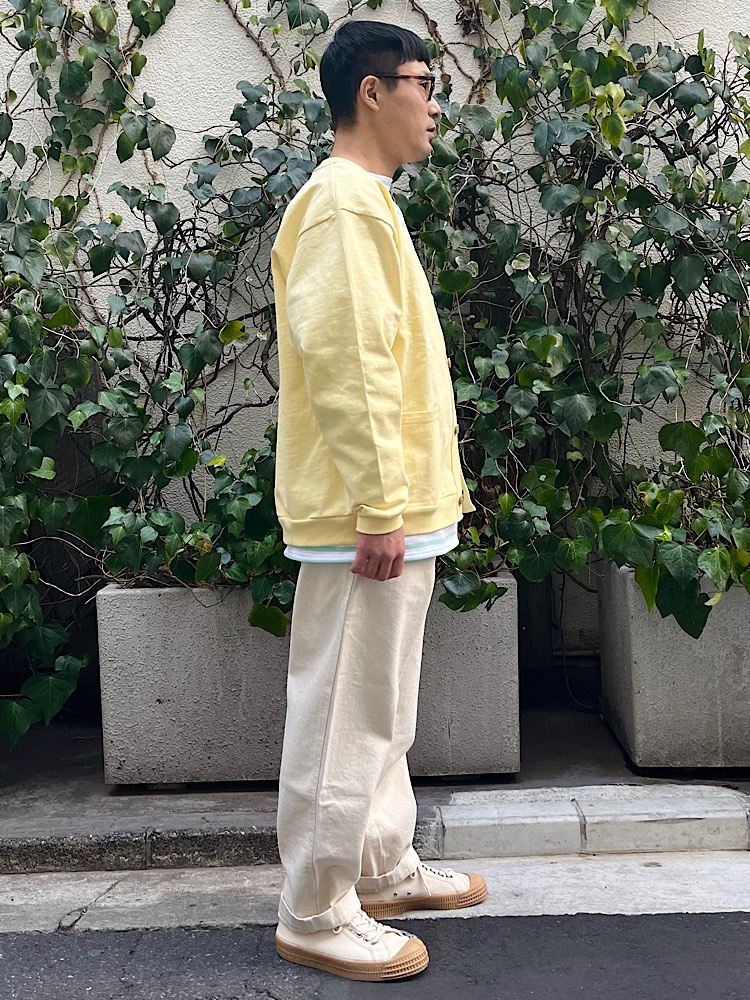 素材感/着心地:イージーパンツですが、フロントにジッパーが付いているのが嬉しいですね。何度かこちらのパンツは投稿しておりますので、合わせてご参考にして頂ければと思います。