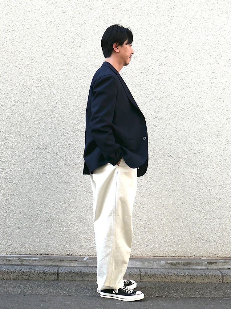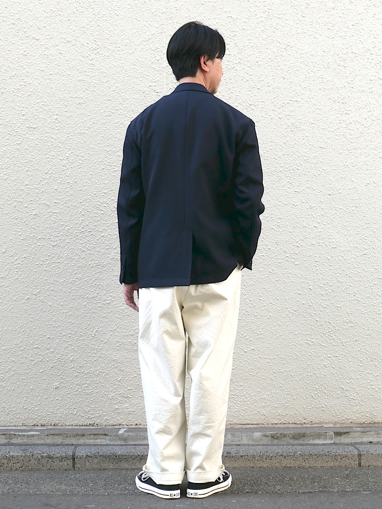 素材感/着心地:シャリ感のあるウールポリ素材にパッチアンドフラップ、フックベントと定番仕様で長く着用いただけます。