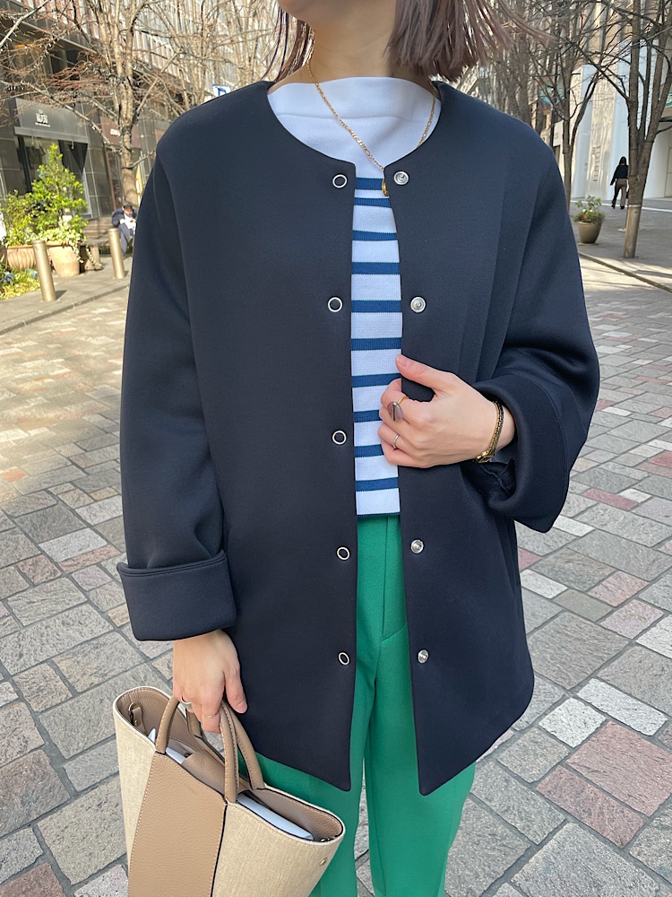 【素材感・着心地】ポリエステル100%で柔らかく軽い着心地。袖を折り返して着てもかわいいです。