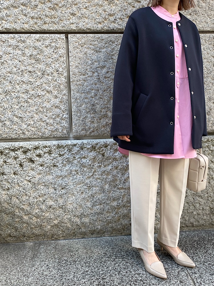【素材感・着心地】ポリエステル100%で柔らかく軽い着心地。袖を折り返して着てもかわいいです。