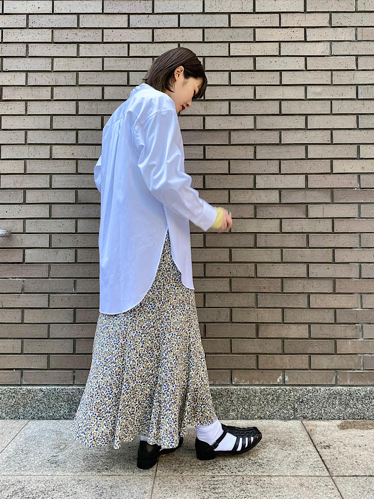 少し透け感があり、ニットやスウェット等とのレイヤード