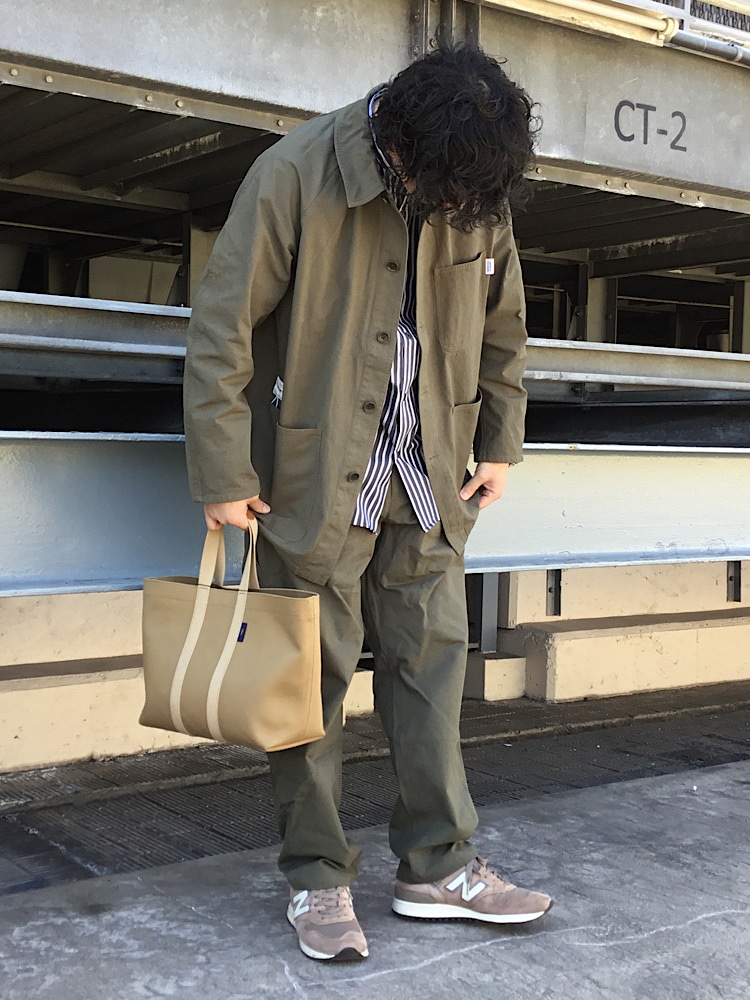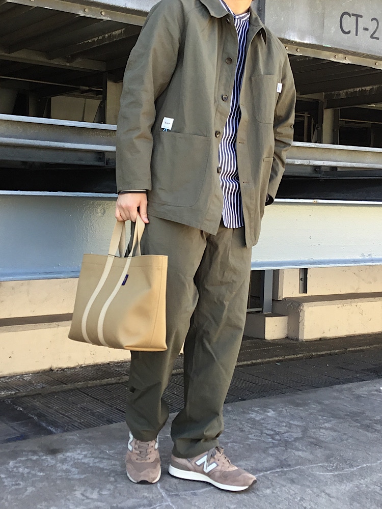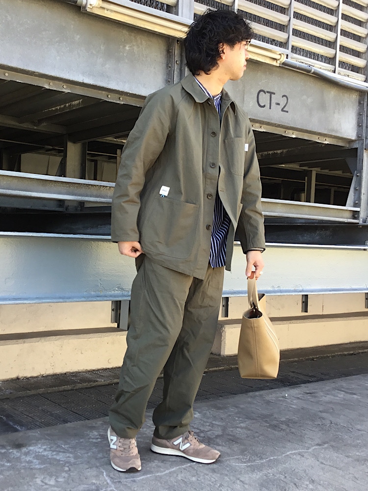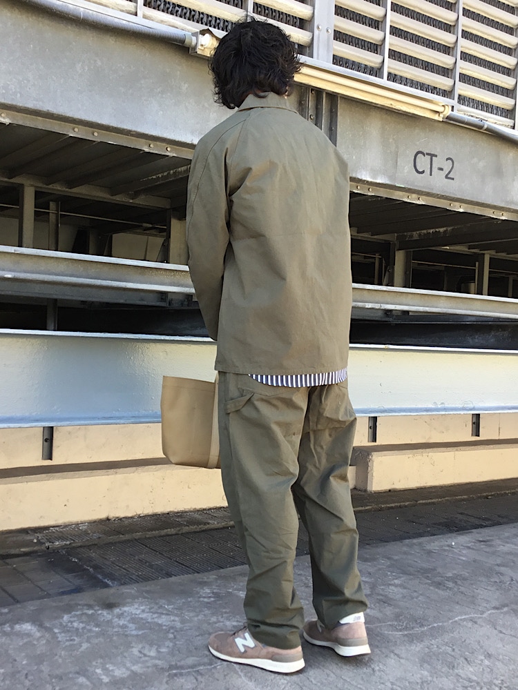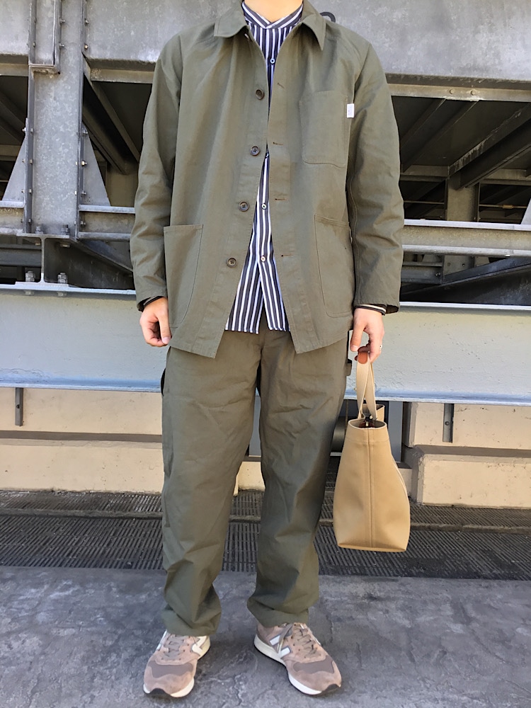 今回は迷迭香のワークジャケットとパンツを合わせてセットアップで着ています!