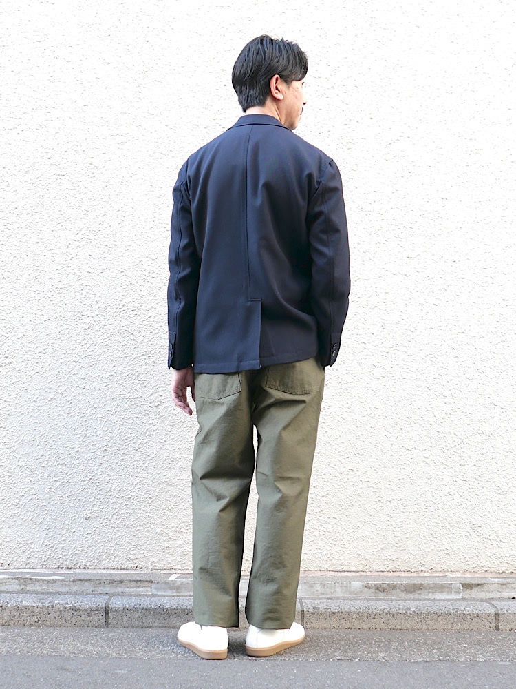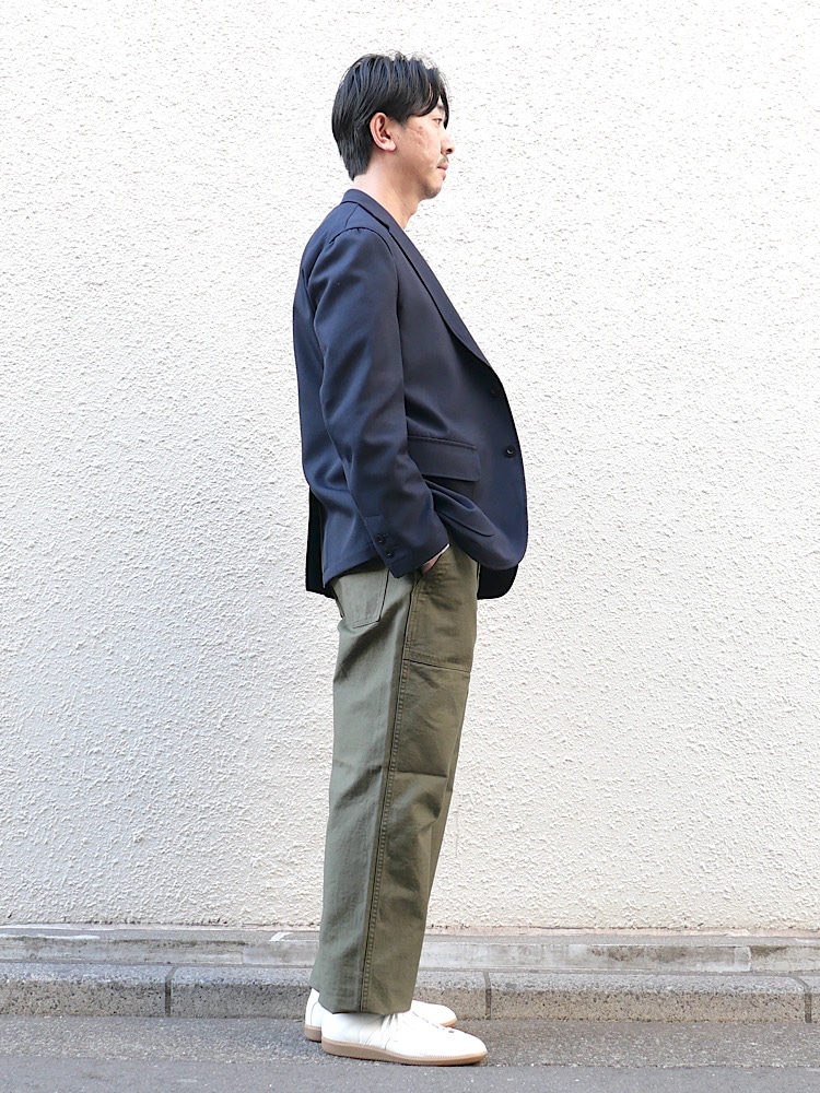 太過ぎず綺麗なテーパードで大人も履けるミリタリーパンツを使用した定番ジャケットコーディネートです。