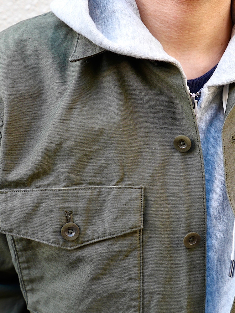 素材感/着心地:古着と比べてややコンパクトなシルエットとなっております。スッキリしたデザインなので、幅広くコーディネートに取り入れて頂けます。