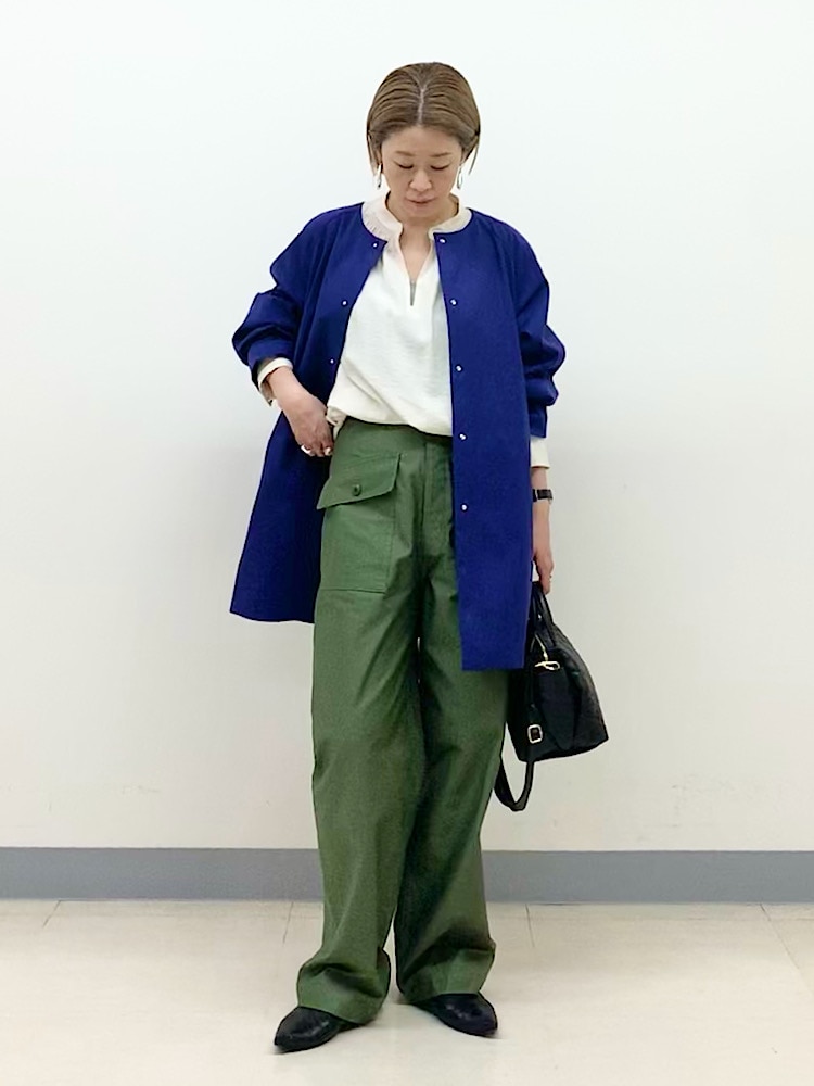 サイズ感:全体的にゆったり。袖もややボリュームが出て、コートを脱いでも可愛いです。
