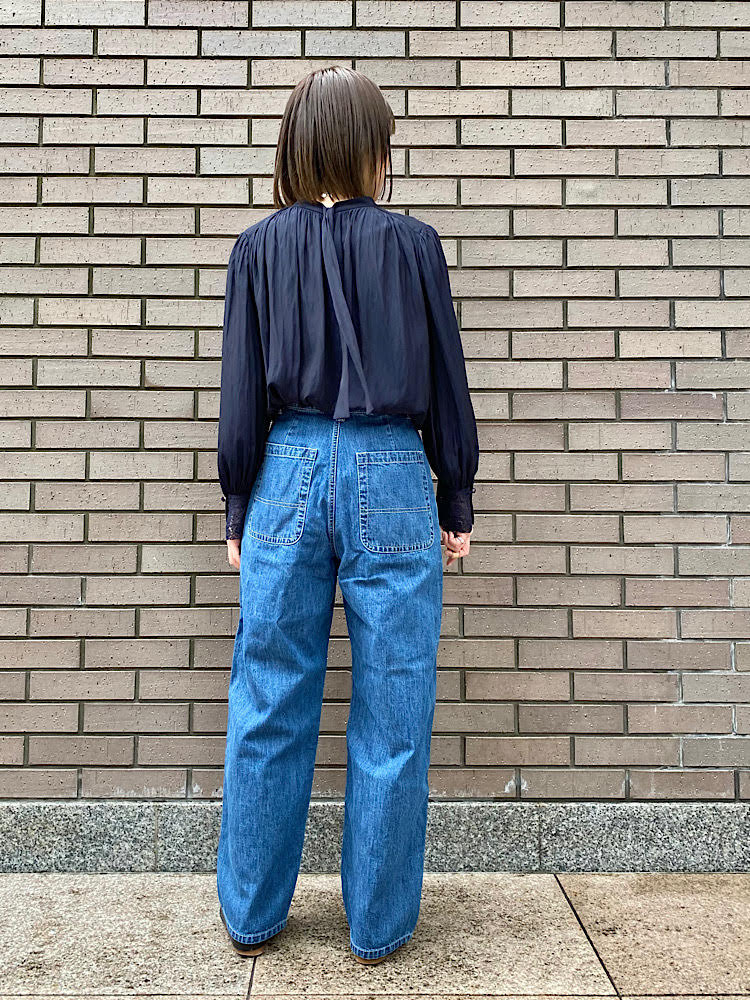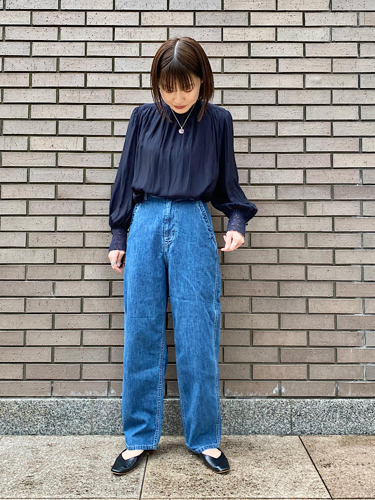シャーリングブラウスをデニムと合わせてカジュアルダウンしました