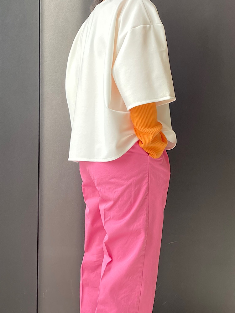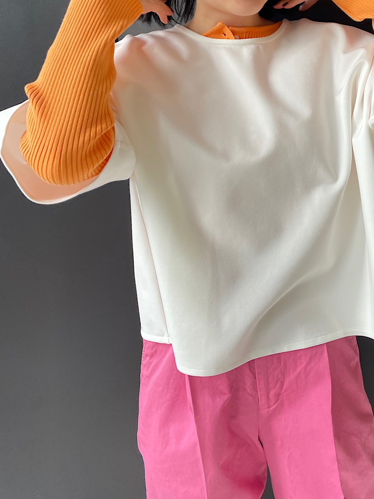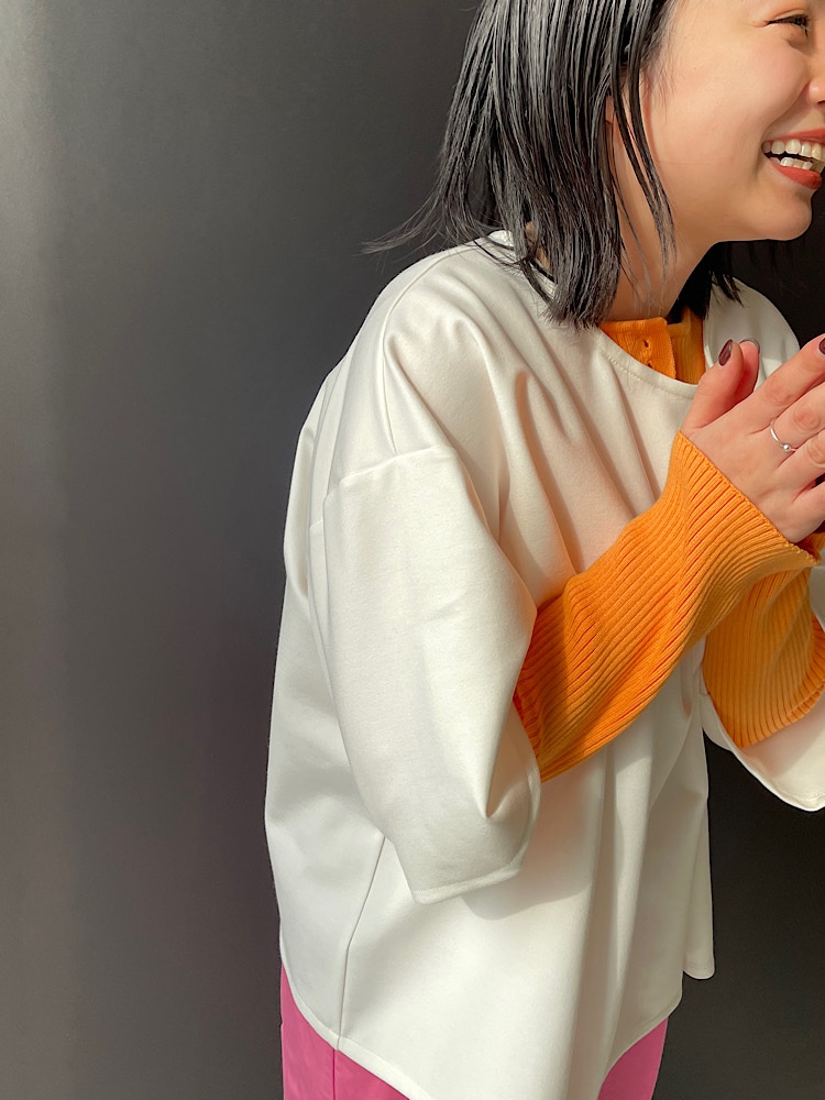 袖がすこし広がるフレアシルエットで手首を華奢に