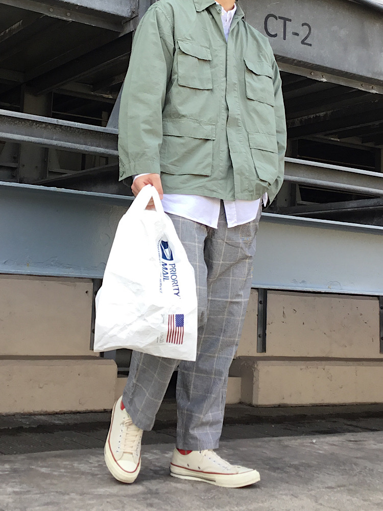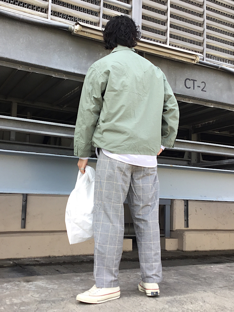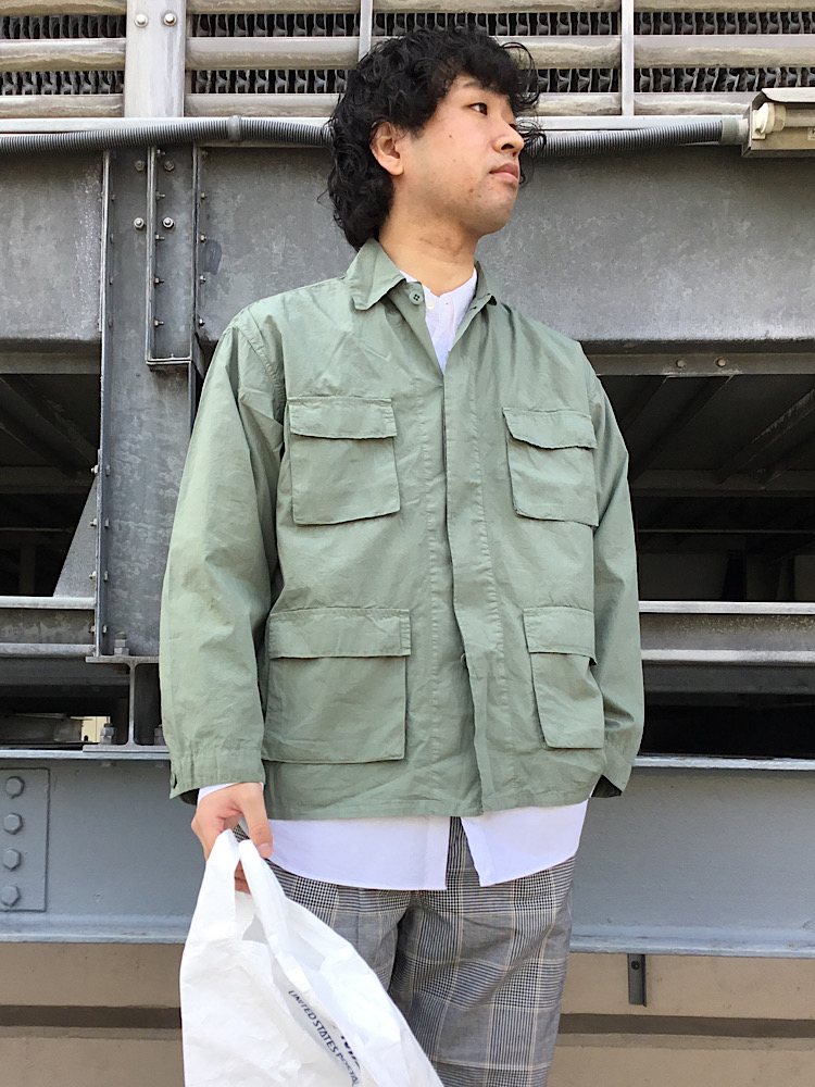 今回はミリタリーシャツジャケットにボタンダウンシャツをIN。