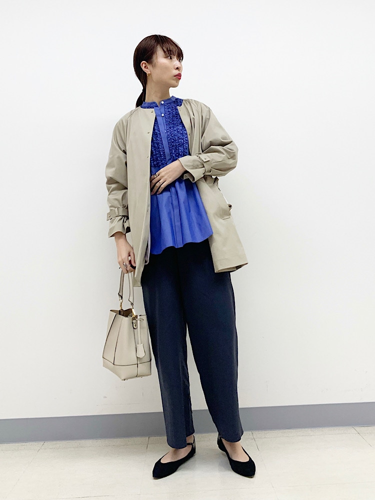 素材感・着心地:ハリのある素材。シワになりにくく、手洗い可能。