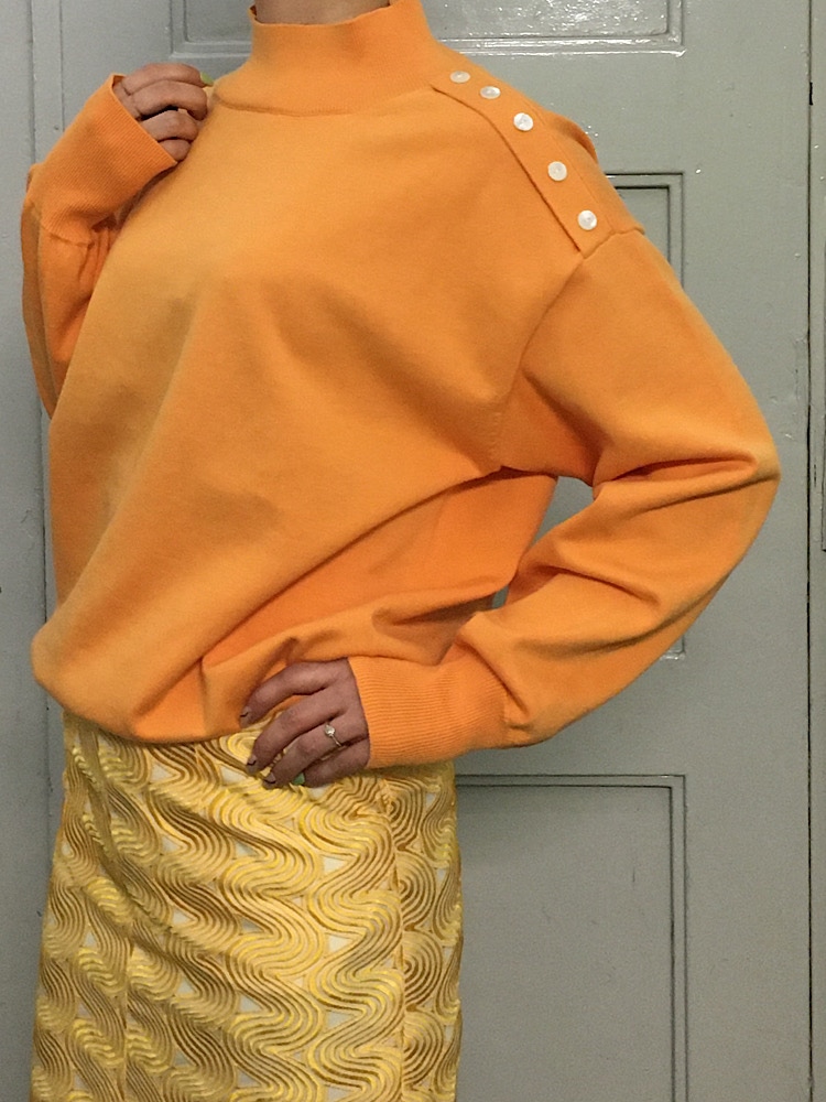 サイズ感:ジャストサイズ。ウエスト周りはゆとりがあるので重ね着しやすいです。