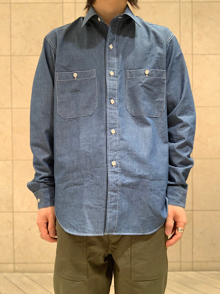 素材感:経糸に33/1のオリジナルインディゴ、緯糸には強撚にした梳毛のウールを使用した、特別なダンガリー素材。