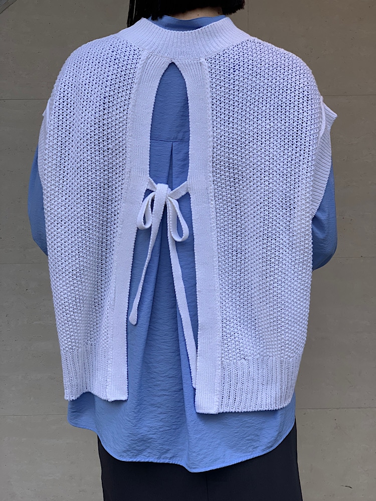 着心地:網目が大きく中の物が見えるので爽やかな印象でレイヤードが楽しめそうです。