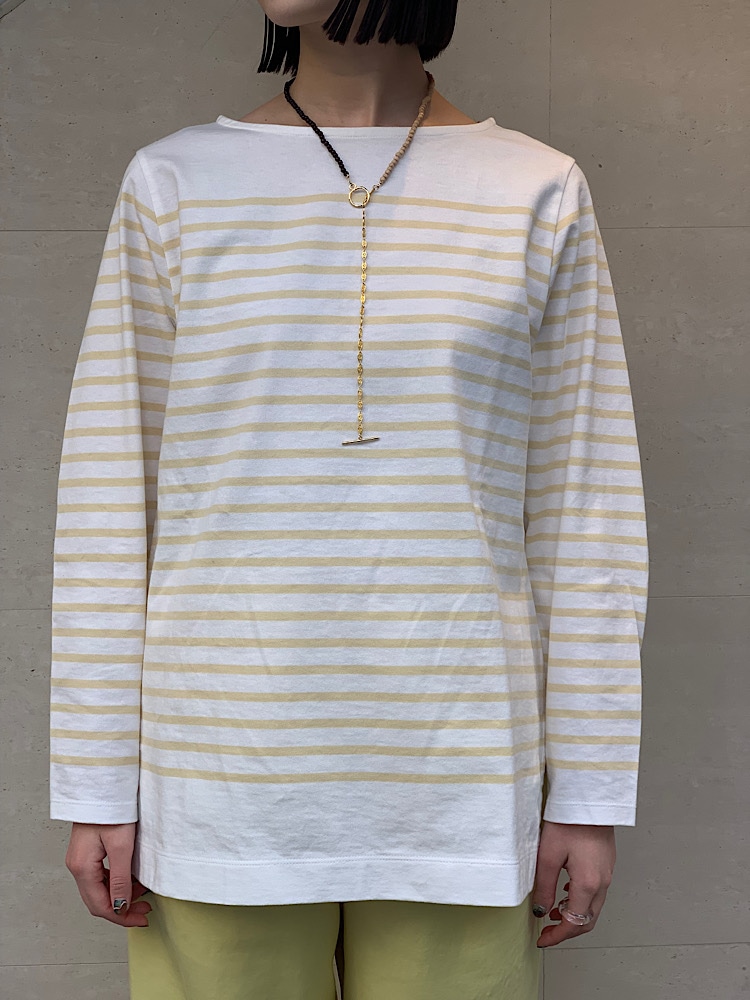 着心地:普段色物を着ない方でも挑戦しやすいボーダーカラーです。春のアクセントに1枚あると便利です。