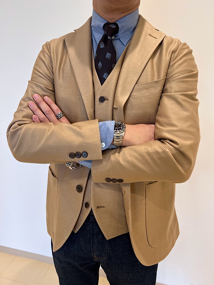 ジャケット,ベストの2ピースをYCHAIのデニムと合わせてみました。