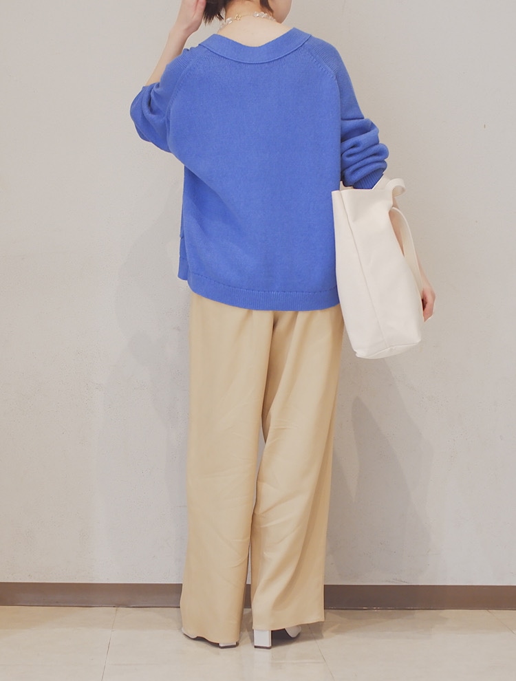 着心地:シルクが入った中肉のニット素材です。しっかりした編み地なのでインナーを入れてトップスとしても着て頂けます◎