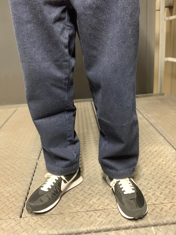 素材感: 岡山でインディゴ染色を施し、デニム織機で織り上げた12〜12.5オンスのデニム生地を使用。