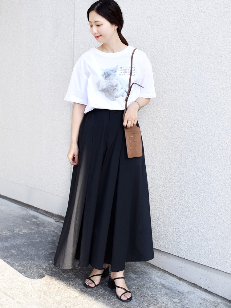 スカーチョ合わせで女性らしさをプラスしたコーデに。