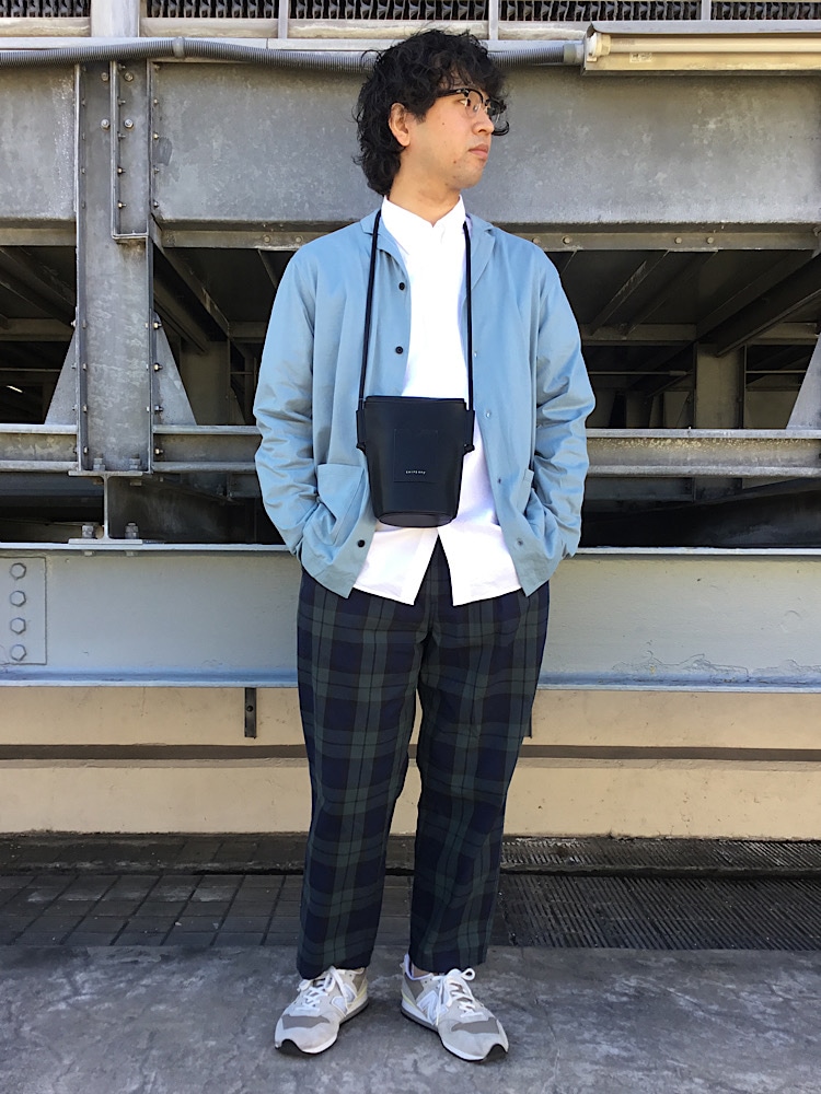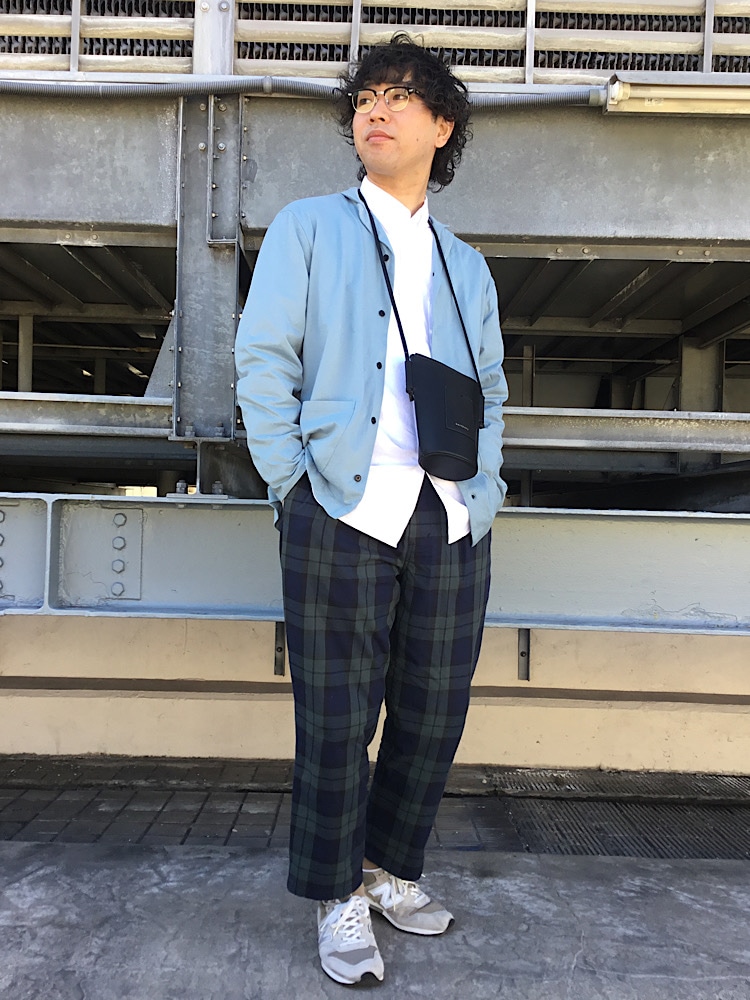 今回は春にピッタリなアイテムのカーディガンジャケットにボタンダウンのシャツを合わせてブラックウォッチ柄のイージーパンツで大人カジュアルスタイルに!