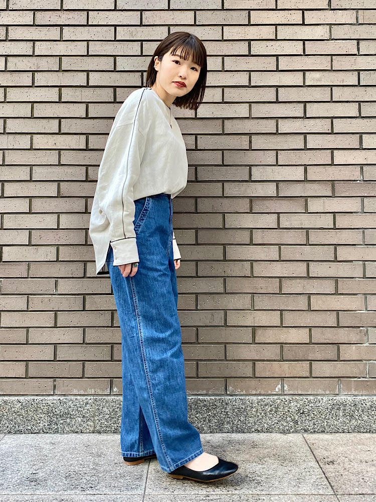 Nellのパイピングブラウスをカジュアルにコーディネート