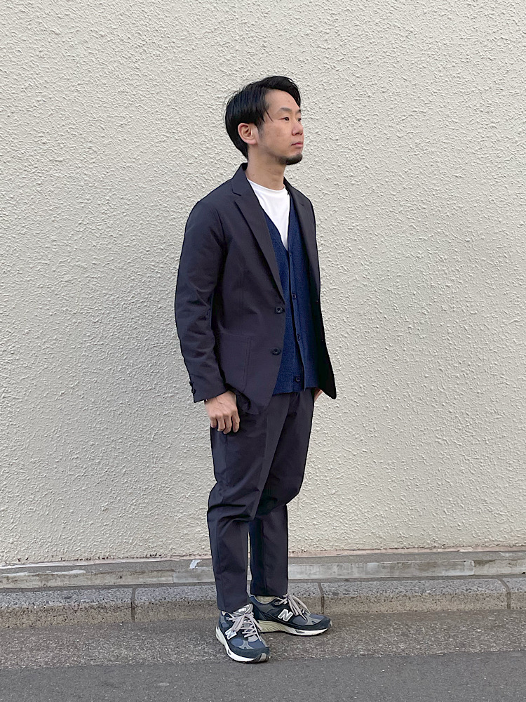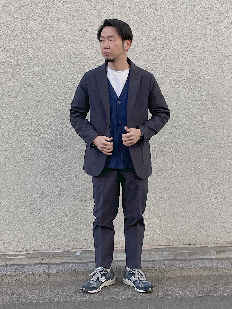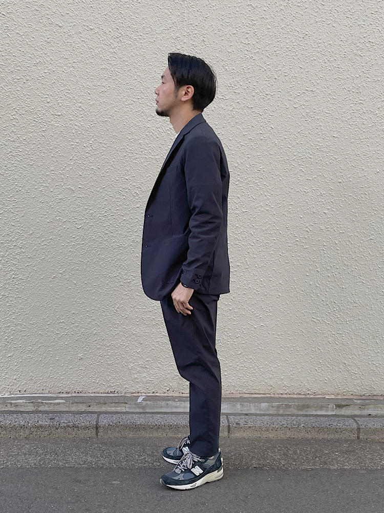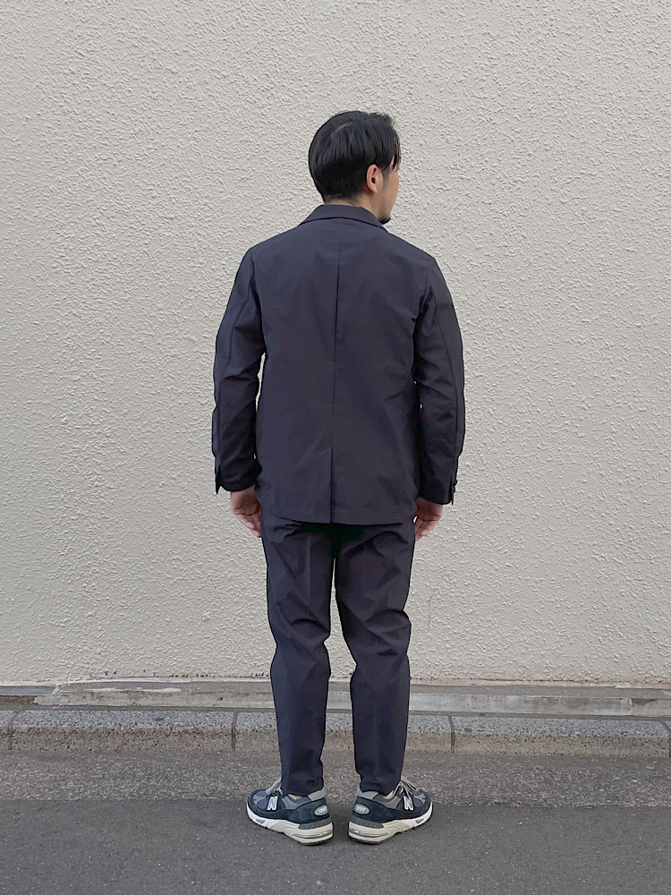 素材感/着心地:ポリエステル100%。軽量でストレッチ性のあるTAION生地で作ったシップス別注のセットアップ。
