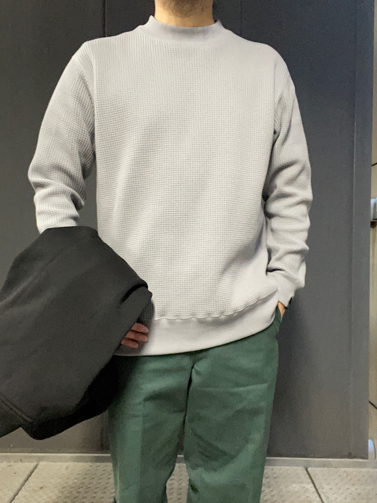 素材感・着心地:しっかりとした生地感で一枚着でもインナーとしても今の時期活躍してくれるアイテムです。