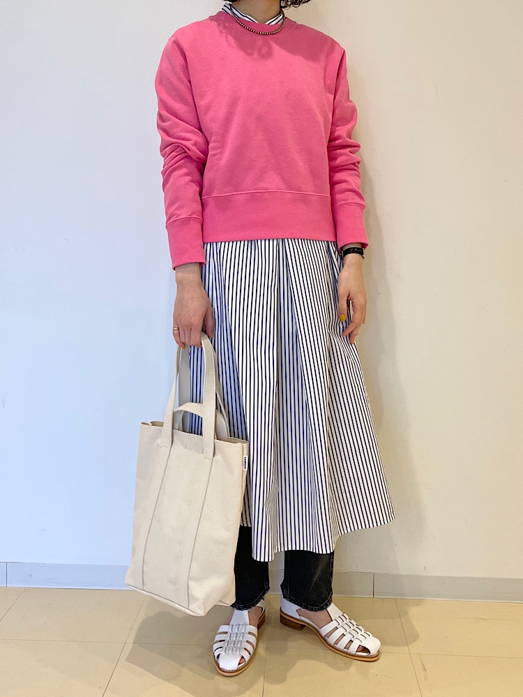 スッキリしたコンパクトなサイズ感なのでスウェットでもきれいめな印象で着られます。
