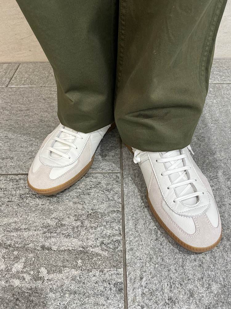 【素材感・着心地】ゆったり過ぎず、幅広く使えるキレイなシルエットのチノパン。生地にはフィンクスコットンが使用されており、上品な質感が特徴。