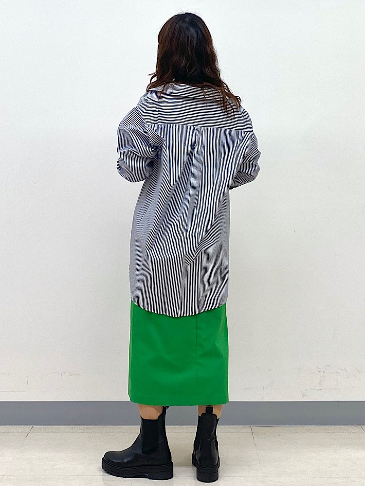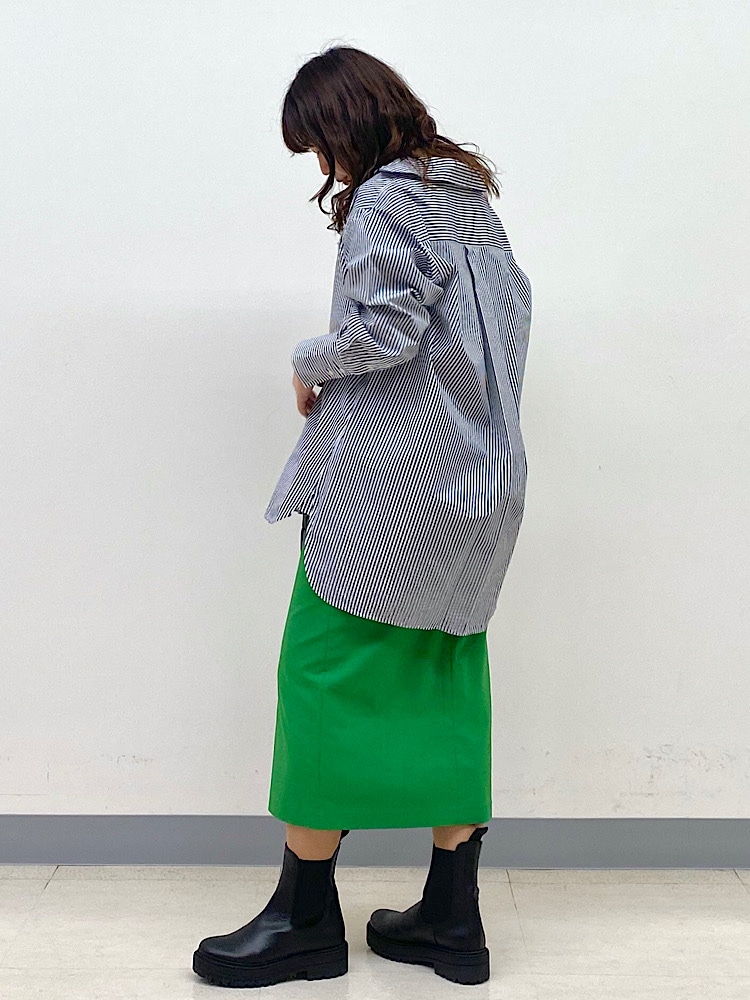 ビッグシルエットのシャツ×タイトスカートの合わせは気になる部分をカバーしつつ、今っぽさを出せます。