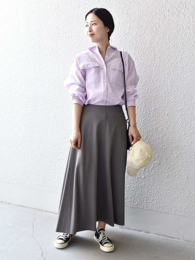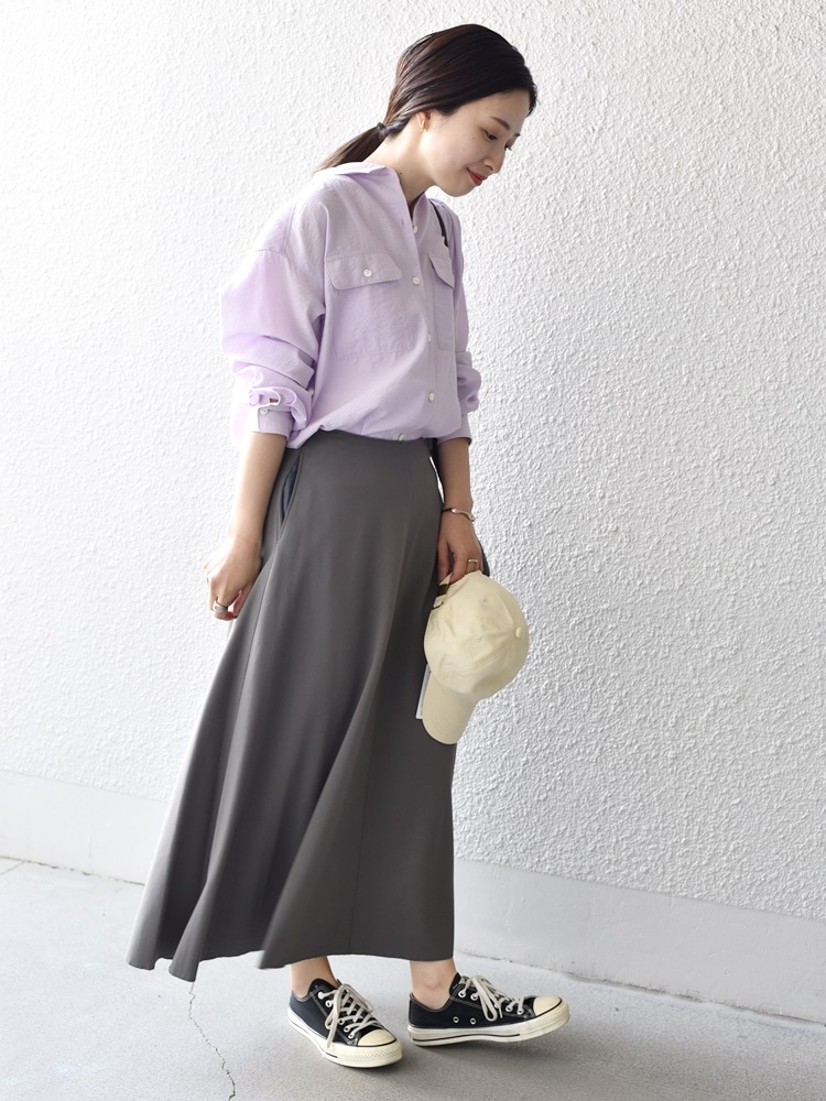 シャツとスニーカーで大人カジュアルなコーデに。