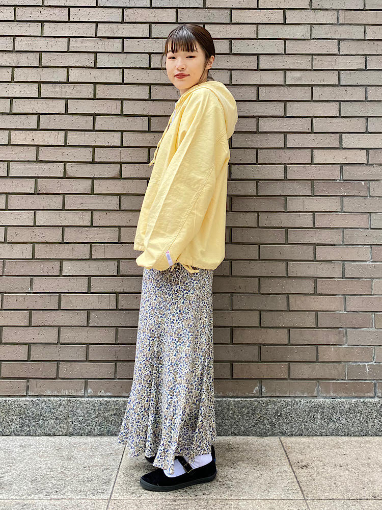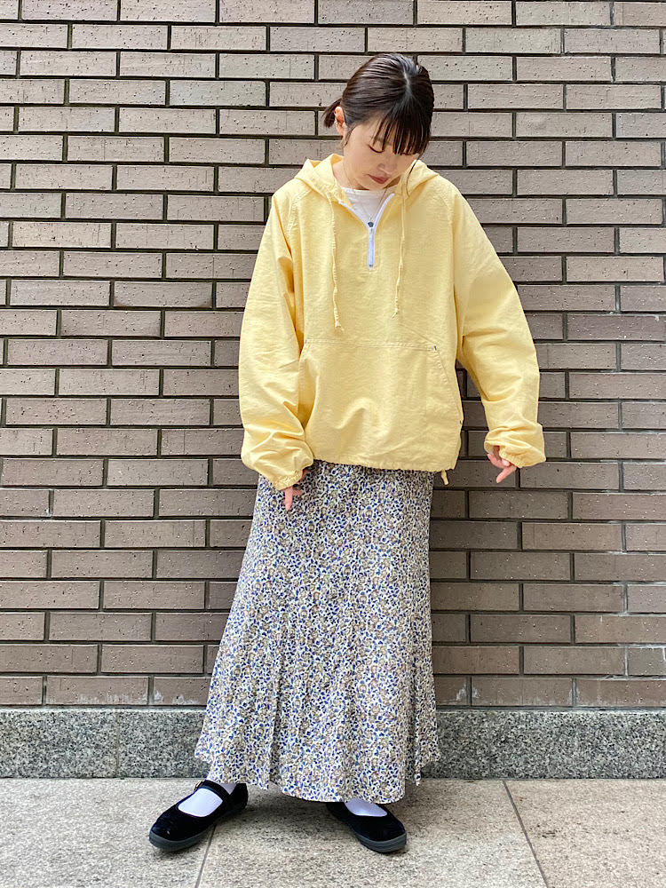 SMITH'Sのアノラックパーカーにフレアスカートを合わせて