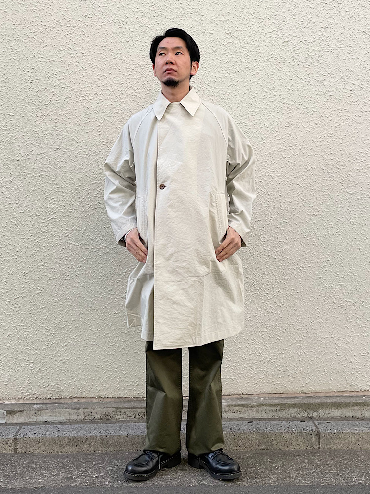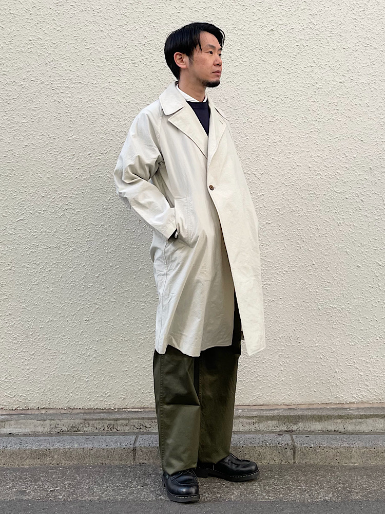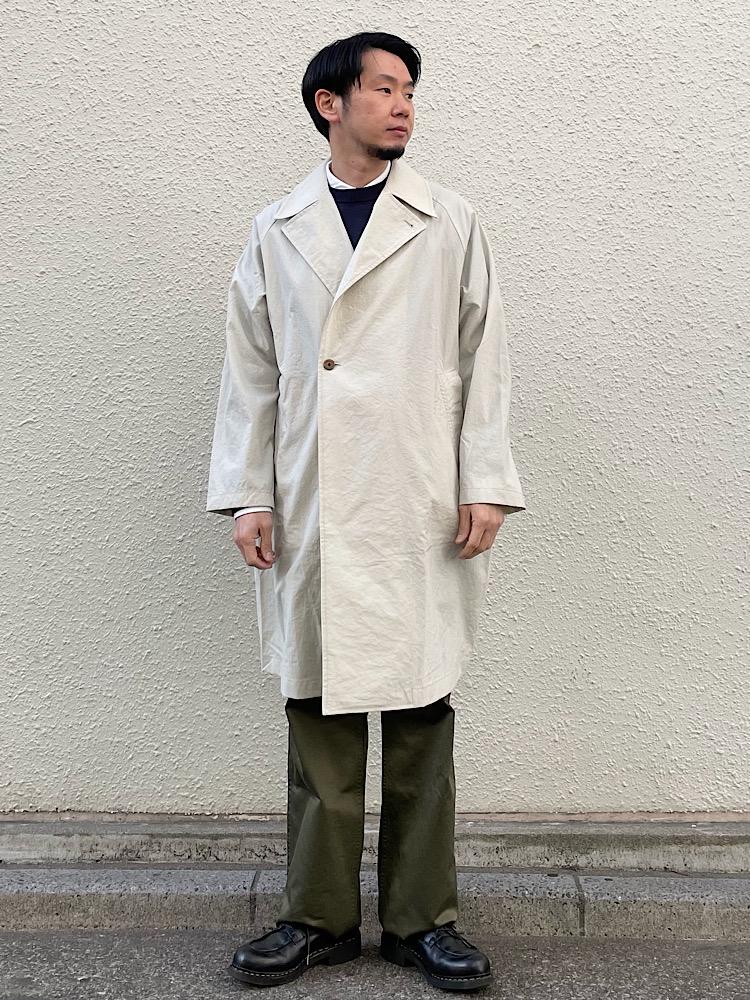 素材感/着心地:コットン100%。日本製で縫製から生地まで拘った定番のチノパン。履きこむほどに馴染んで経年変化を楽しめるアイテム。