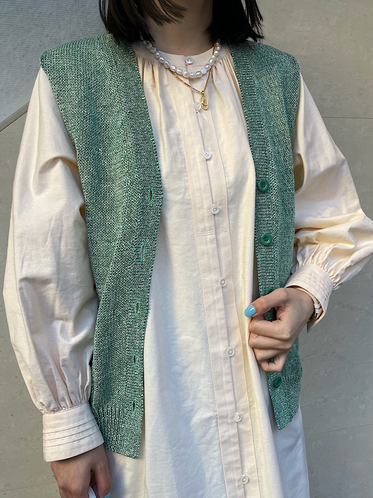 着心地:麻素材でとっても軽やかです。さりげないラメ感があり、コーディネートが華やかになります◎