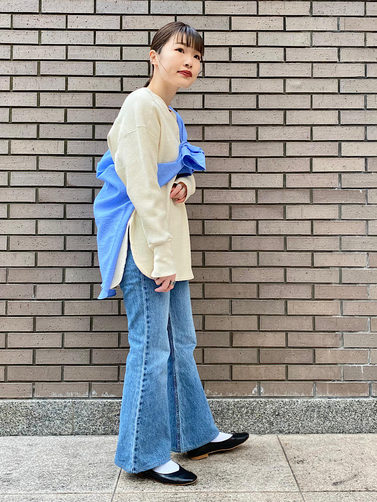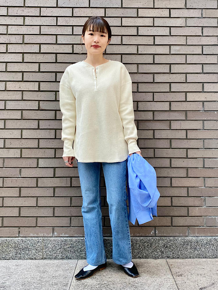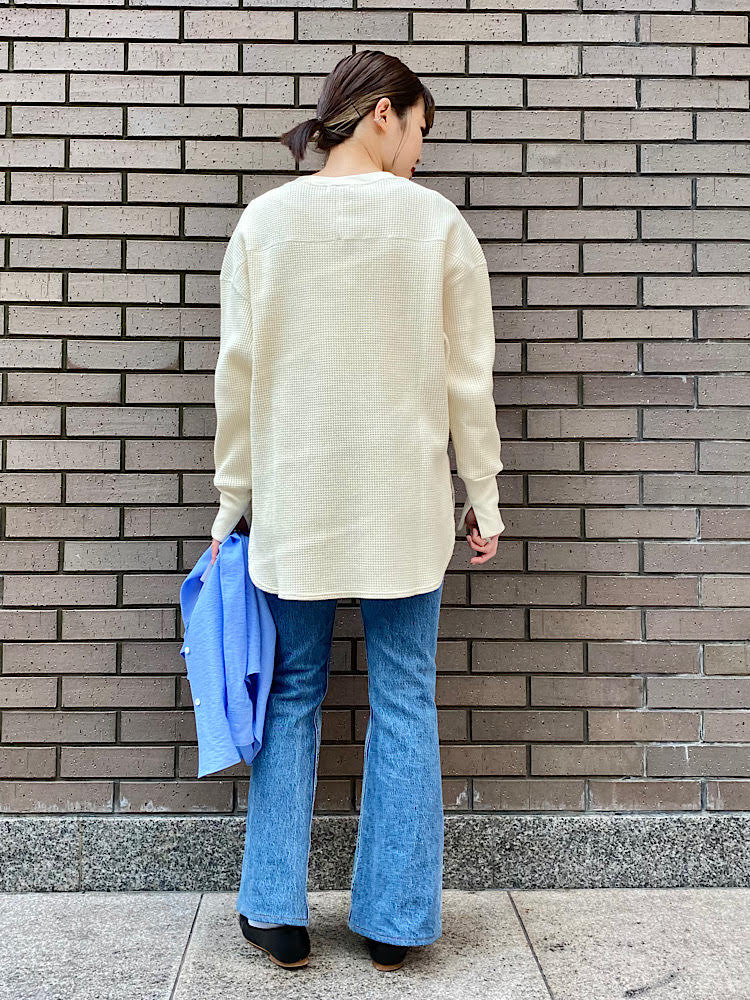 ワッフルプルオーバーにデニムを合わせてカジュアルに