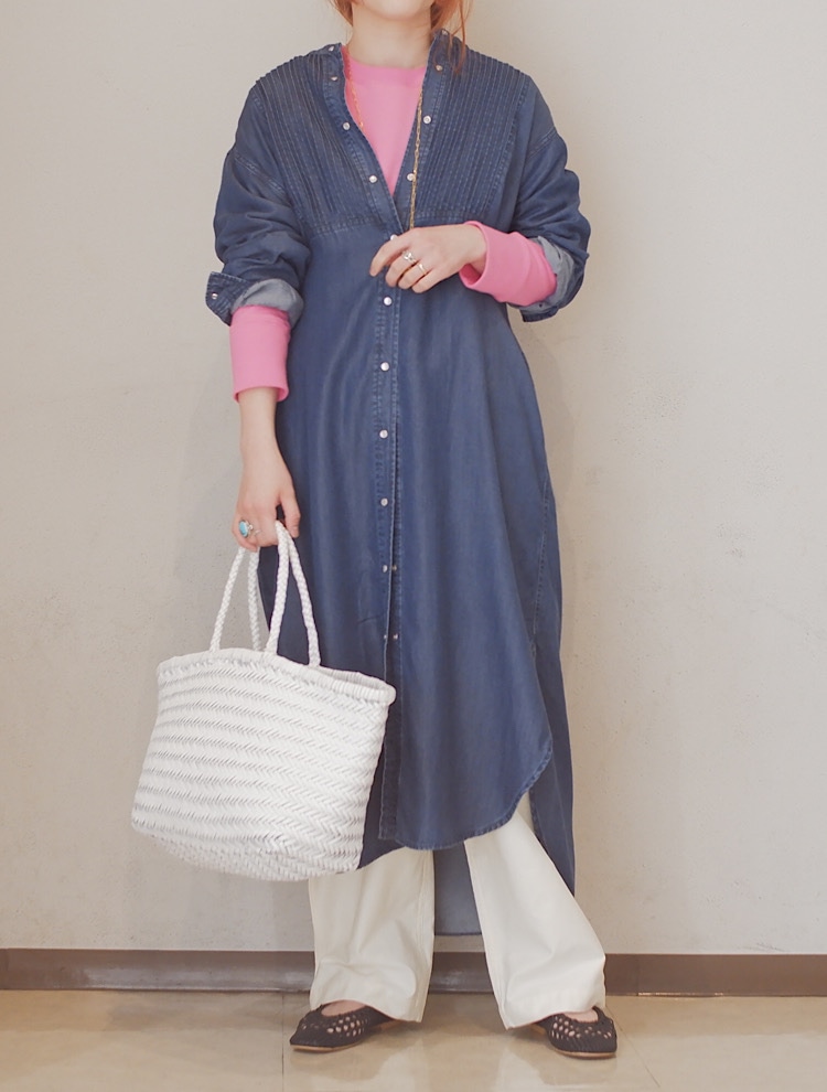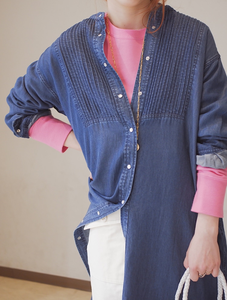 着用アイテム:デニムピンタックシャツワンピース