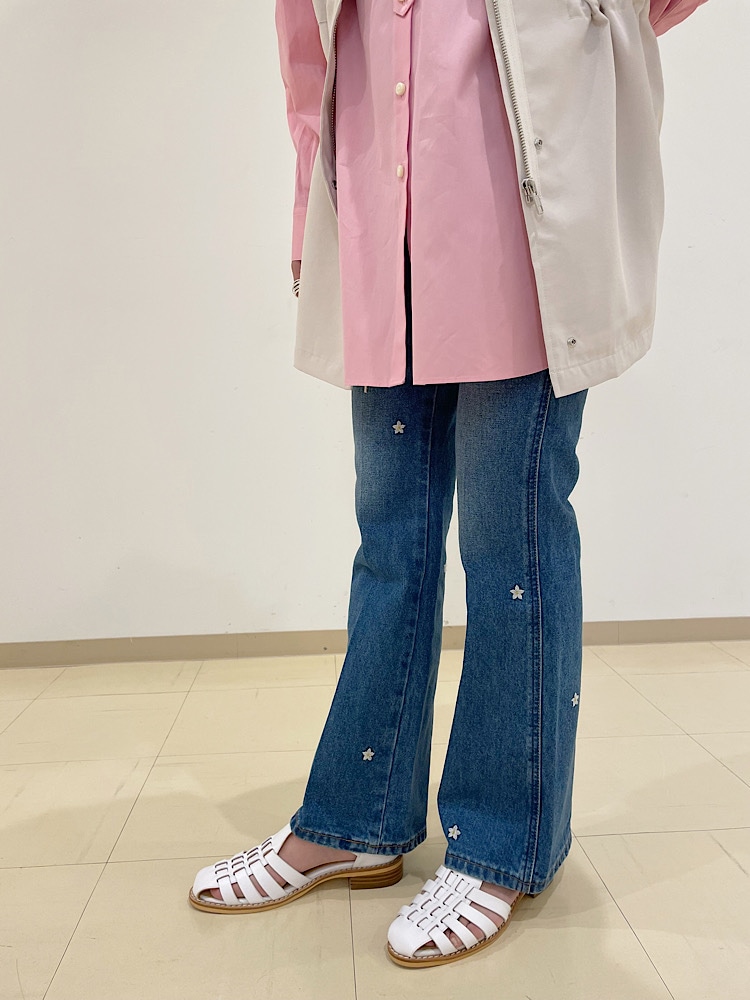 【素材感・着心地】脚長・美脚効果あり、スタイリッシュなデニムスタイルになります。お花の刺繍がアクセントになって可愛い。