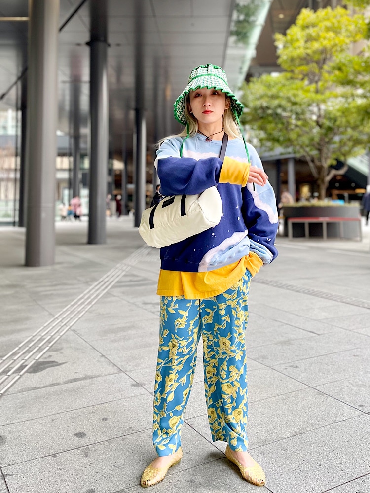 ・着こなしポイント : 柄が挑戦!という方は、少しゆったりめのトップスやワンピースなどと合わせるとコーディネートに取り入れやすいですよ