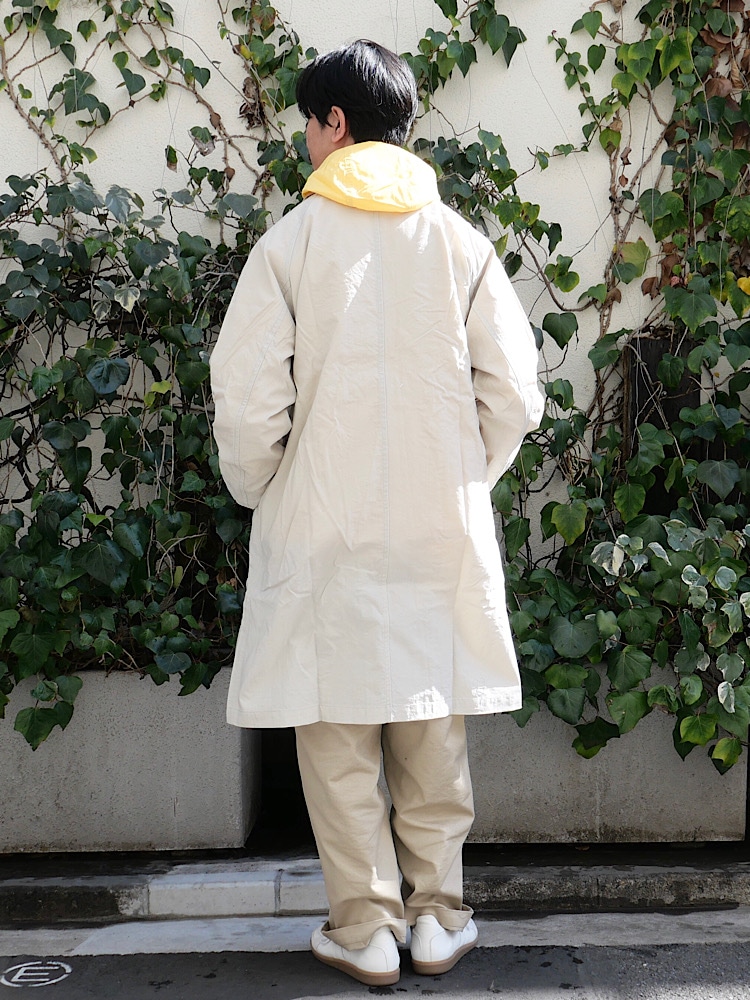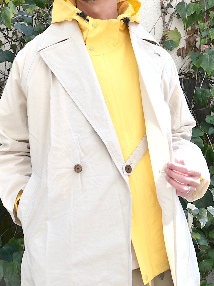 春色ベージュのワントーンコーディネートです。インナーのイエローを差し色にしました。