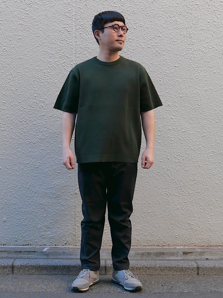 素材感/着心地:Sサイズでも着れましたが、夏の1枚着を想定して合わせて見ました。ドライタッチで着心地も良いです。