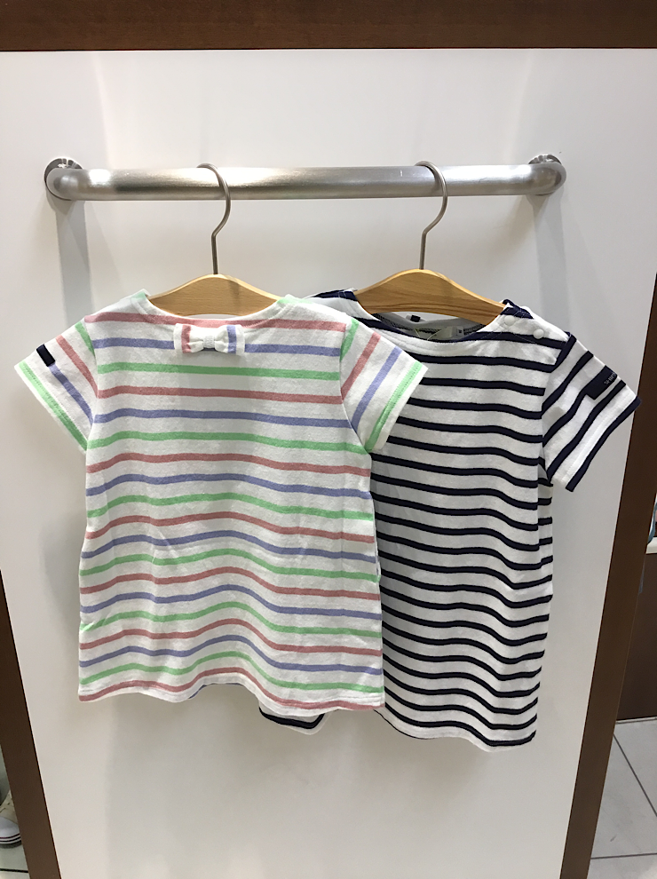 人気のボーダーワンピースが入荷しました! 春夏らしいパステルのカラーとシンプルなネイビーボーダーです。 展開サイズ 80cm〜150cm トルソー 90cm 着用サイズ 90cm