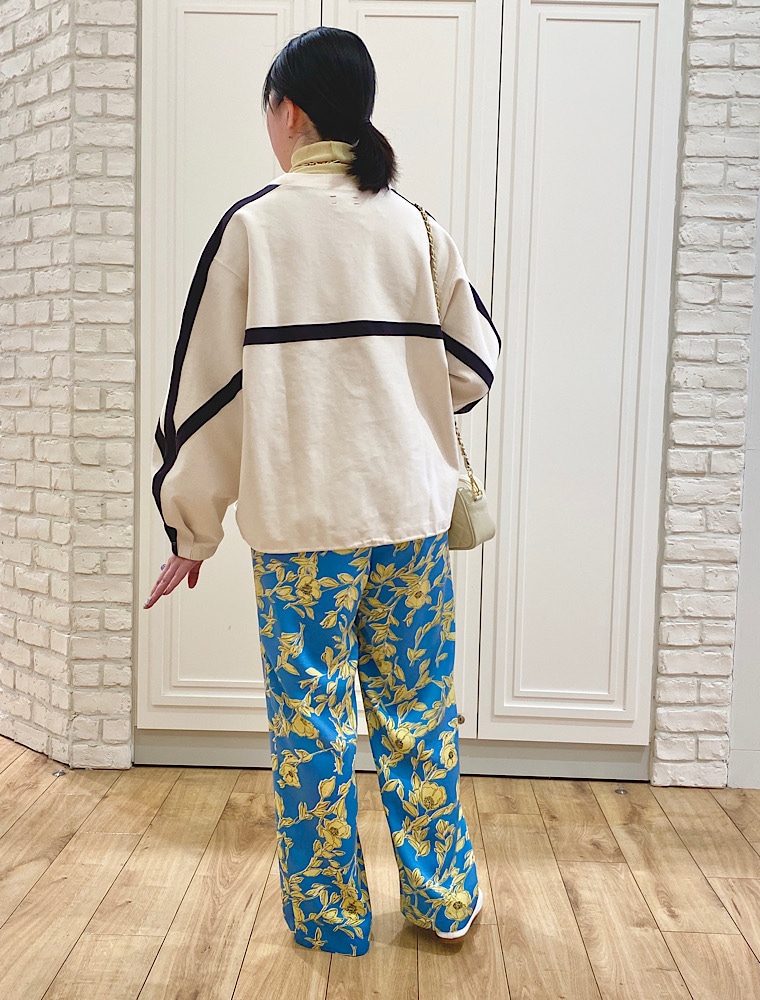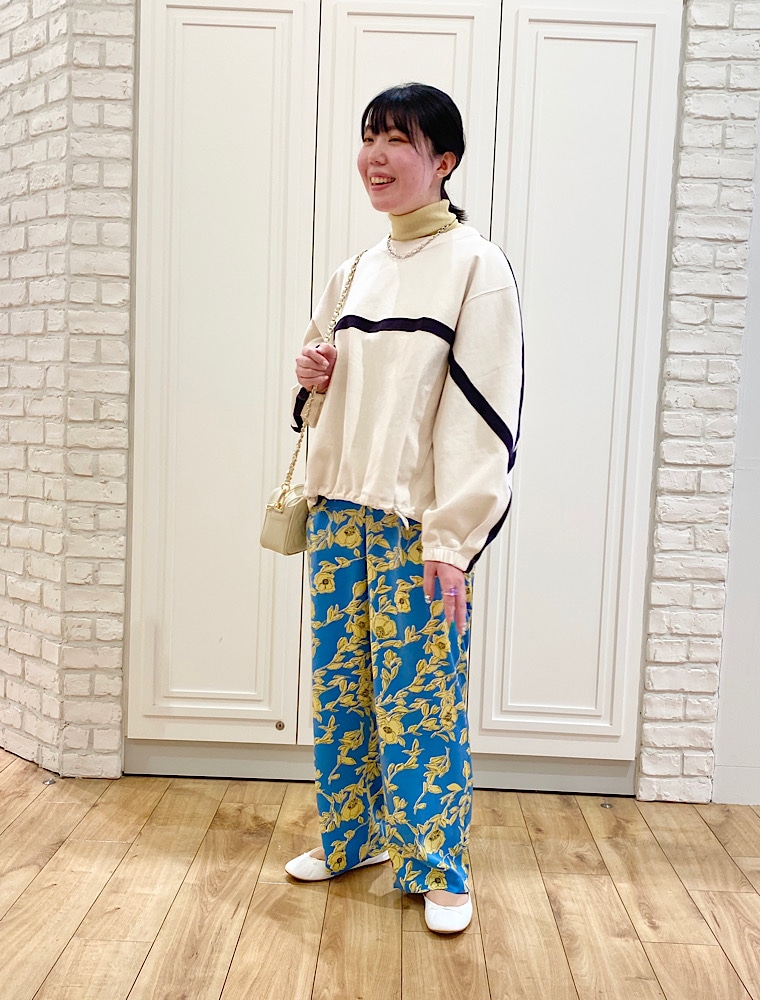 ラインとギャザーが可愛いスウェットは着回しが楽しめそうです。